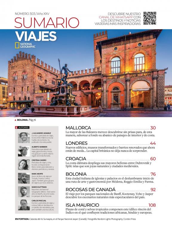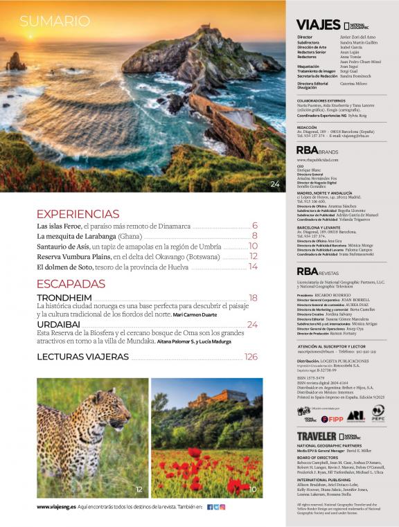 Los reportajes de la revista Viajes National Geographic España es el medio idóneo para admirar la belleza del mundo, inspirarse o relajarse con ella, evocar antiguos viajes o plantearse otros nuevos. Con fotografías y textos de calidad excepcional, Viajes National Geographic presenta cada mes rutas por España, Europa y el resto del mundo, escapadas de fin de semana y paseos para conocer lo más atractivo de una ciudad, junto a experiencias en plena naturaleza o para disfrutar del patrimonio cultural.