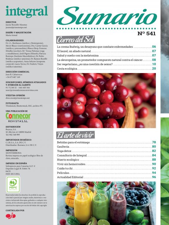 INTEGRAL España: Es una revista para los que no sólo quieren una vida mejor sino también un mundo mejor. Profundiza en temas de ecologismo, salud y alimentación natural, salud ambiental, medio ambiente, naturaleza, hogar y hábitos saludables, solidaridad y formas de vida alternativas y sostenibles. Con 30 años de historia, INTEGRAL cuenta con colaboradores de renombre, como Manuel Rivas, Vandana Shiva, Juan López de Uralde, Joaquín Araújo, Wangari Maathai o Jorge Riechmann, y expertos en el campo de la salud y las terapias naturales. Cada mes leen INTEGRAL más 150.000 lectores, porque cada vez son más los que saben que todo lo que le ocurre al planeta repercute directamente en las personas.