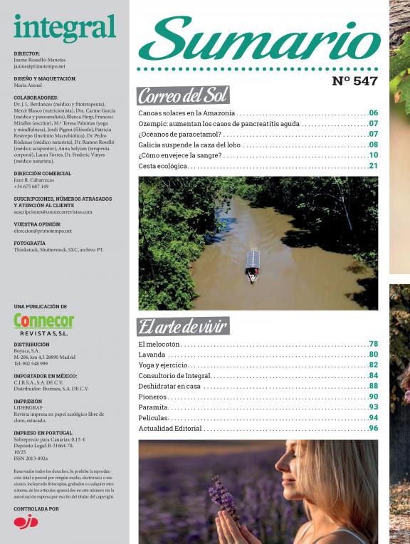 INTEGRAL España: Es una revista para los que no sólo quieren una vida mejor sino también un mundo mejor. Profundiza en temas de ecologismo, salud y alimentación natural, salud ambiental, medio ambiente, naturaleza, hogar y hábitos saludables, solidaridad y formas de vida alternativas y sostenibles. Con 30 años de historia, INTEGRAL cuenta con colaboradores de renombre, como Manuel Rivas, Vandana Shiva, Juan López de Uralde, Joaquín Araújo, Wangari Maathai o Jorge Riechmann, y expertos en el campo de la salud y las terapias naturales. Cada mes leen INTEGRAL más 150.000 lectores, porque cada vez son más los que saben que todo lo que le ocurre al planeta repercute directamente en las personas.