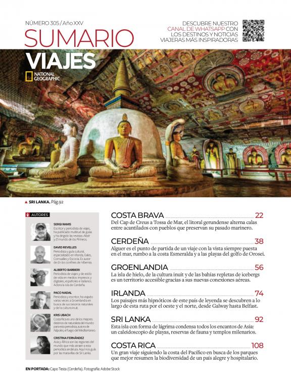 Los reportajes de la revista Viajes National Geographic España es el medio idóneo para admirar la belleza del mundo, inspirarse o relajarse con ella, evocar antiguos viajes o plantearse otros nuevos. Con fotografías y textos de calidad excepcional, Viajes National Geographic presenta cada mes rutas por España, Europa y el resto del mundo, escapadas de fin de semana y paseos para conocer lo más atractivo de una ciudad, junto a experiencias en plena naturaleza o para disfrutar del patrimonio cultural.