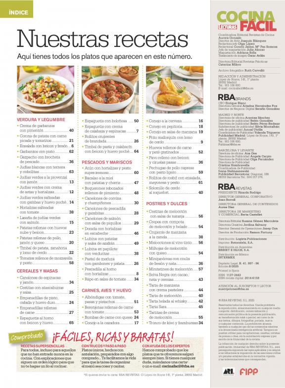 COCINA FACIL ESPAÑA La revista de cocina con recetas fáciles y económicas elaboradas con productos de temporada que soluciona tus menús diarios. Más de 50 ideas superapetitosas para comer bien, de forma variada y con el mínimo gasto.