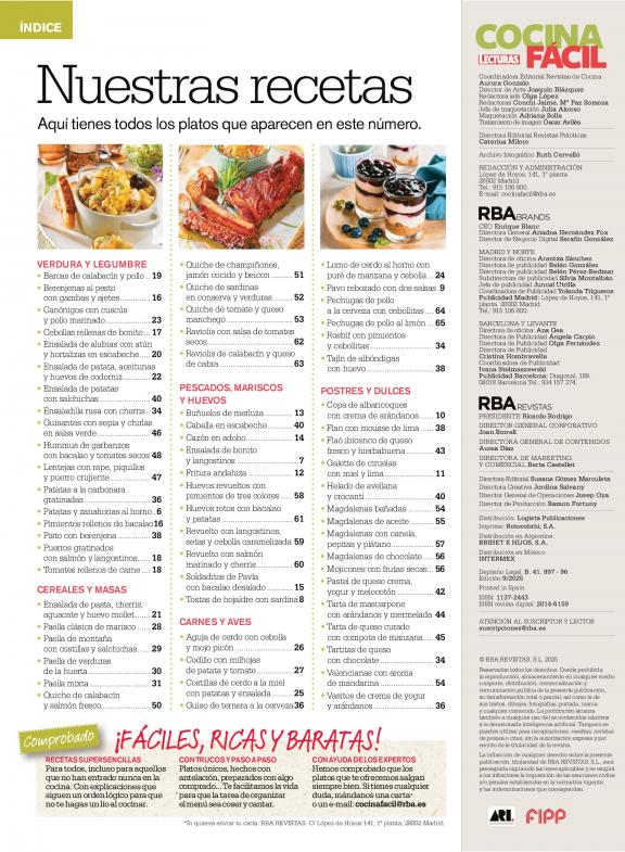 COCINA FACIL ESPAÑA La revista de cocina con recetas fáciles y económicas elaboradas con productos de temporada que soluciona tus menús diarios. Más de 50 ideas superapetitosas para comer bien, de forma variada y con el mínimo gasto.