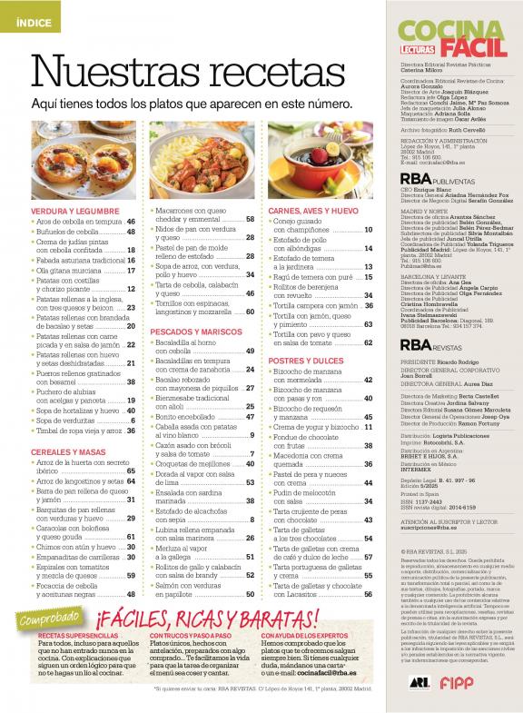 COCINA FACIL ESPAÑA La revista de cocina con recetas fáciles y económicas elaboradas con productos de temporada que soluciona tus menús diarios. Más de 50 ideas superapetitosas para comer bien, de forma variada y con el mínimo gasto.