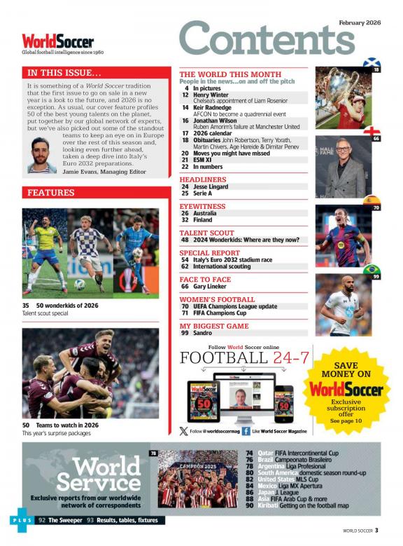 World Soccer is an English-language football magazine, published by Kelsey Media. The magazine was established in 1960 and is the oldest continually published ...