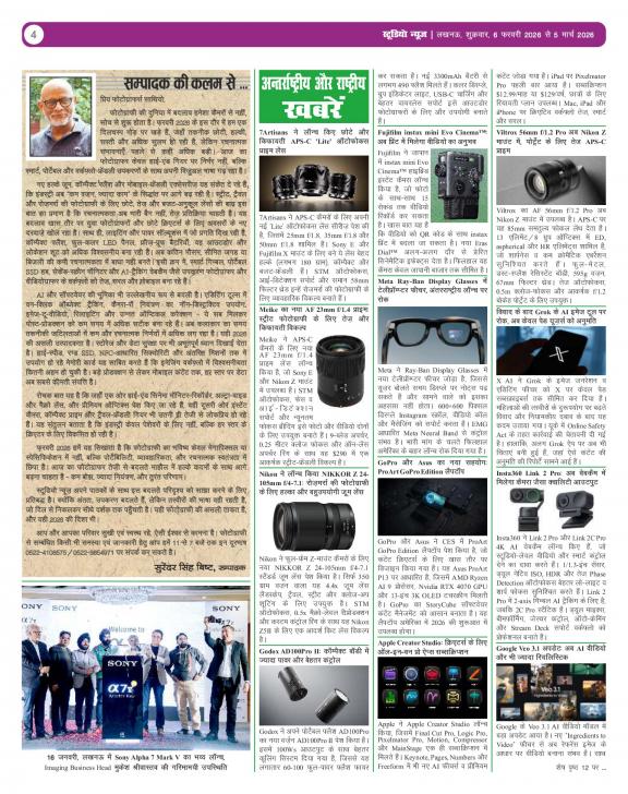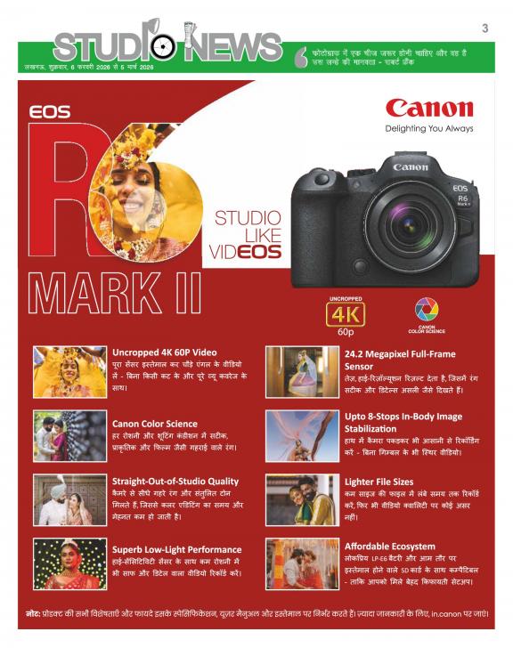 Studio News is monthly 16 pages multi-color tabloid in Hindi. This is India First Photography newspaper, which is published in Hindi, enabling the studios, photographers and other Photography trade related technicians to get first-hand knowledge and understanding about the latest products, help them acquire skill to use the products and make them proud owners. STUDIO NEWS is focusing and distributing hard copy, to the studios in India’s state -Uttar Pradesh RAJASTHAN, GUJARAT, PUNJAB, HARYANA, HIMACHAL PRADESH, UTTARAKHAND, DELHI, BIHAR, CHHATTISGARH, JHARAHAND & MADHYA PRADESH. Circulation of hard copies is approximately 10000 every month. The main objective of The STUDIO NEWS is to educate studios, photographers and technicians with the latest technical knowledge of camera, video and other trade related equipment’s; familiarize them with the editing and other software features and support them with wide range of usages of new technological equipment’s which are quite unknown or ambiguous to them due to language barrier.