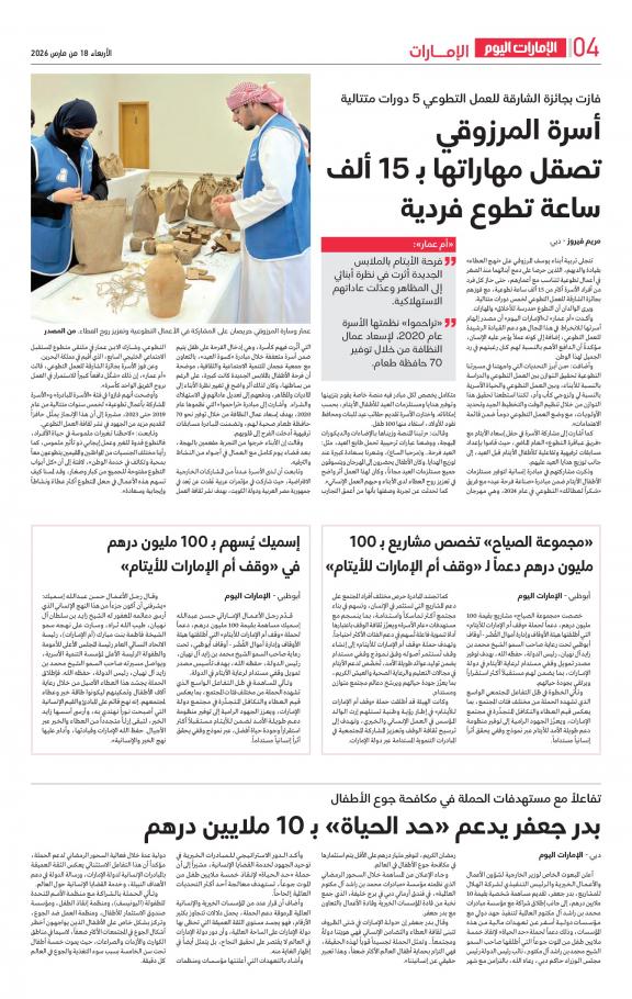 مكنك الآن الاستمتاع بتصفح النسخة الرقمية، والتي هي طبق الأصل عن النسخة الورقية لصحيفة الإمارات اليوم على هاتفكم الذكي أو الجهاز اللوحي أو على شاشة الحاسوب. النسخة الرقمية تتيح لكم تجربة متميزة للعدد اليومي بكل المقالات والأخبار والميزات وبطريقة سلسة حيث يمكنكم التمتع بقراءة صفحاتكم المفضلة مع إمكانية البحث ومشاركة الأخبار في أي وقت وأي مكان كمرادف عن النسخة الورقية. بالإضافة لميزة القراءة بدون إنترنت عند تحميل النسخة المطلوبة وميزات أخرى ستتعرفون عليها عند تحميل التطبيق.تركز صحيفة الإمارات اليوم التي صدر العدد الأول في 19/09/2005 في مجمل محتواها على الشأن المحلي، والقضايا التي تهم القراء العرب في دولة الإمارات العربية المتحدة، ضمن سياسة تلتزم بالشروط المهنية للعمل الصحافي.