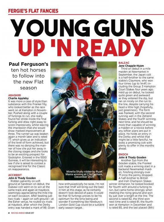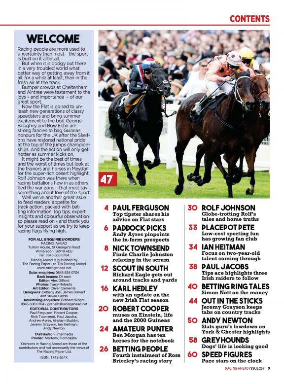 Racing Ahead was founded in 1975 by a group of horse racing enthusiasts who wanted to create a magazine that would provide comprehensive coverage of the sport. Racing Ahead is known for its in-depth reporting, its insightful analysis, and its stunning photography. It features articles on a variety of topics, including: * Race news: The latest news from the horse racing world, from upcoming races to industry trends. * Horse profiles: Profiles of horses, from up-and-coming stars to legends of the sport. * Trainer profiles: Profiles of trainers, from those who are just starting out to those who have won the Triple Crown. * Jockey profiles: Profiles of jockeys, from those who are just starting out to those who have won the Kentucky Derby. * Racecourse reviews: Reviews of racecourses, from those that are new to the scene to those that are steeped in history. Racing Ahead is a must-read for anyone who is interested in horse racing. It is the only magazine that provides comprehensive coverage of the sport, from news and profiles to racecourse reviews. Subscribe today and become part of the horse racing community!